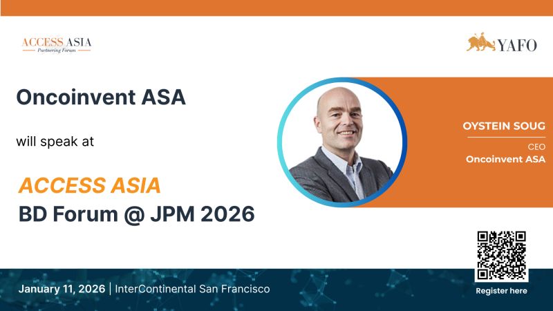 Oncoinvent CEO Jan A. Alfheim will be presenting at 10:25 during the morning Venture Session on Thursday the 14th of December